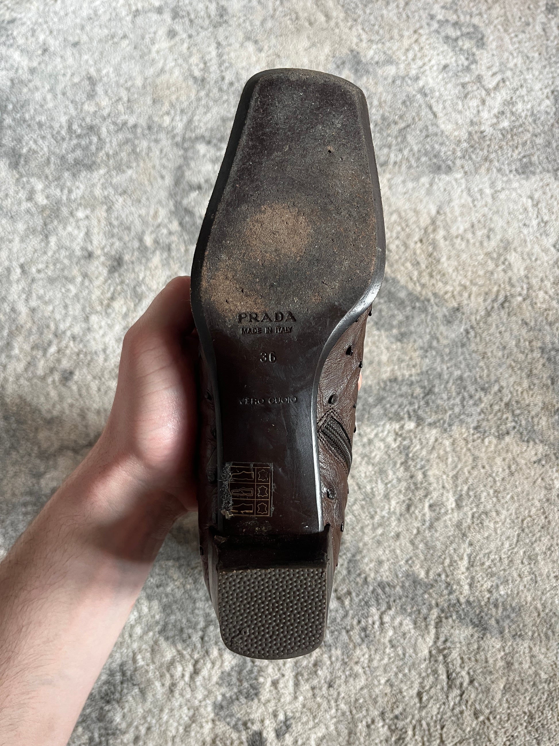 Prada FW2000 ostrich leather boots